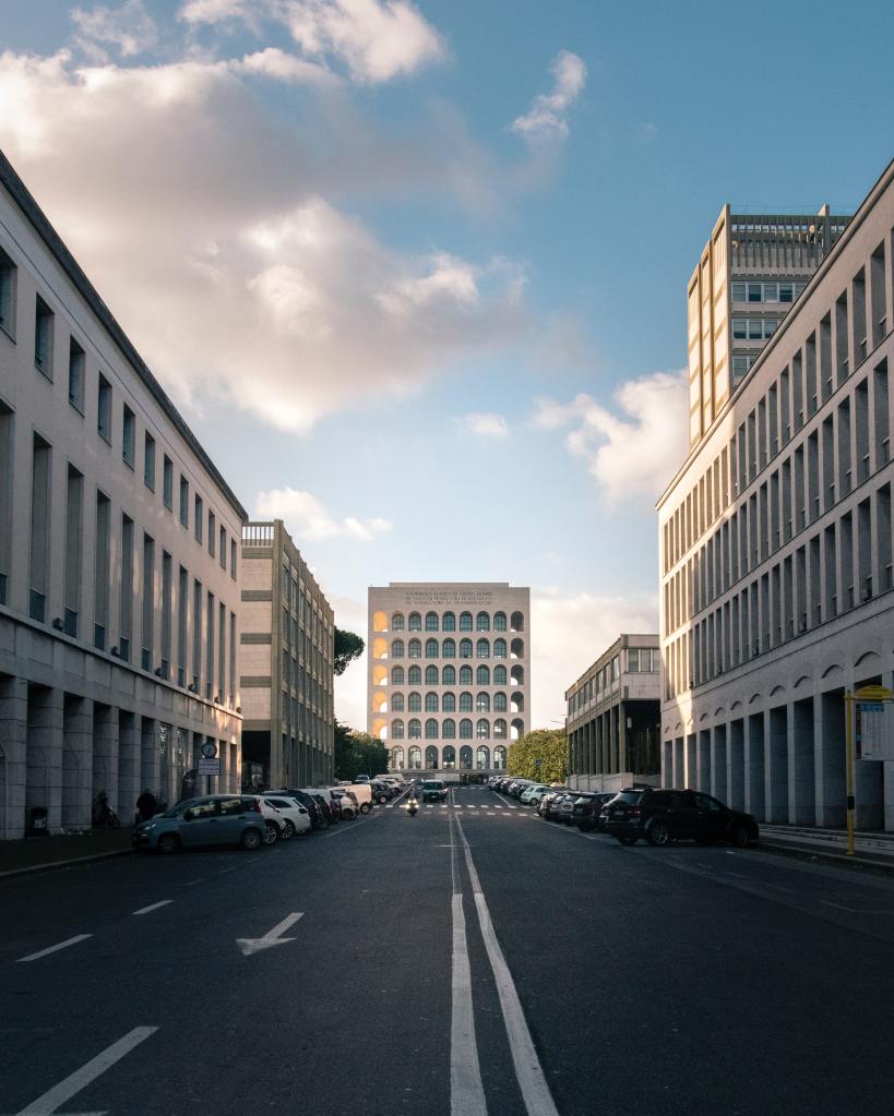 EUR itself is a rather odd suburb of Rome city. The acronymn EUR stands for Esposizione Universale Roma, and its construction was originally intended for a special Expo in 1940 (in the same vein as the World Expos still taking place now, such as Dubai Expo 2020 and Milan Expo 2015). Obviously, as Italy entered World War II in 1942, this did not turn out as planned and the exhibition never took place.