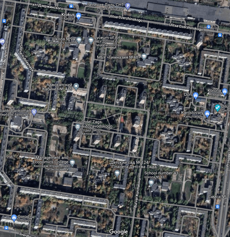 The starting point of the urbanisation project was a hydroelectric dam and power plant, and a workers’ district (rayon) was constructed to house the construction workers. Once this was completed, work started to construct the automobile plant AvtoVAZ, the national automotive company which is still the main production plant for Lada cars. Although, with the Russian economy sinking under international sanctions, it is fairly likely that this won’t be much longer. A second rayon was constructed (Komsomol and Tsentralnyy respectively) to house workers. Foreign experts were enlisted mostly from Italy and Germany, and FIAT was in charge of the entire project. In 1967, a housing district around the new factory site was rapidly completed and still stands today (Avtozavodskyy rayon, or the auto-factory district). This was so large and ambitious that it was originally planned as a new town in its own right, and is still celebrated as the most ambitious urban planning project in the entire history of the USSR.